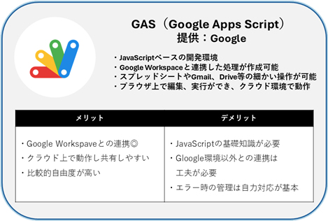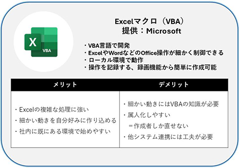 ここでは、マクロ(VBA)・Power Automate・GAS(Google App Script)についてご紹介します。